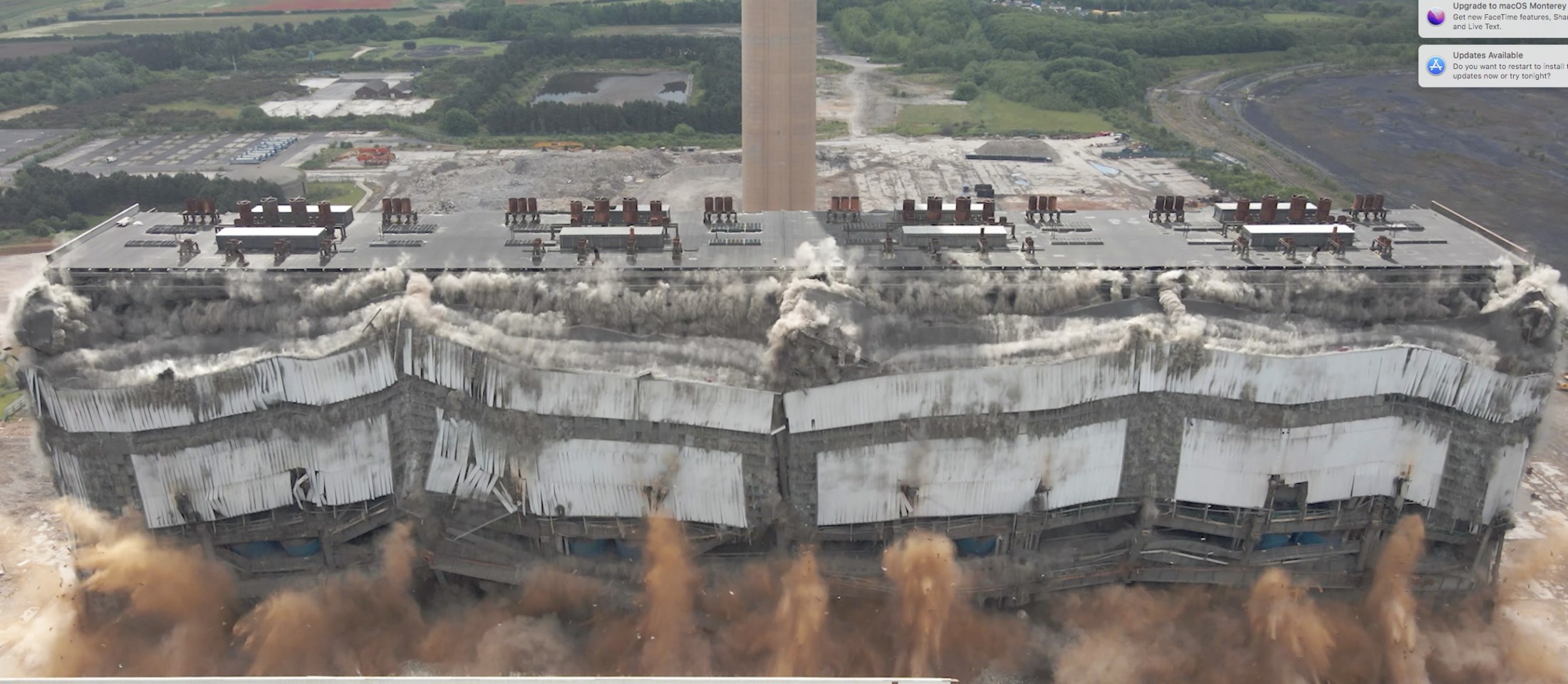 State of the art shaped cutting charges were utilised to initiate the required collapse of the steel structure and the separation of the DA Bay from the Boiler House was captured by remote sacrificial imaging cameras inside the structure.