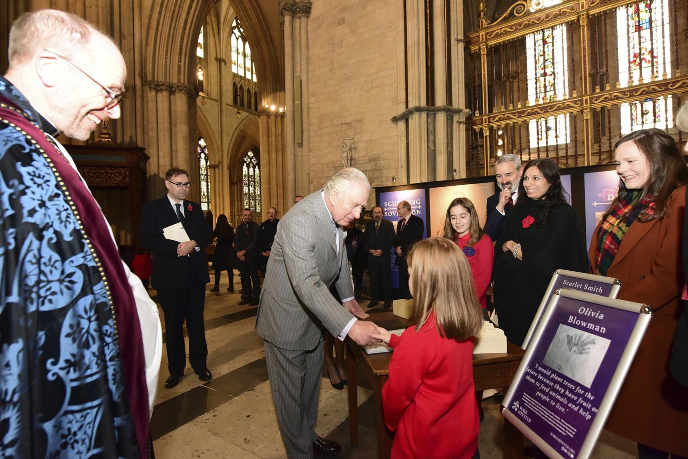 Olivia Blowman and Scarlett Smith met His Majesty at the cathedral on Wednesday, November 9, after they won a competition to design a stone carving marking the Queen’s 70-year reign. The pair’s drawings depicted their hopes and dreams for the world in the next 70 years and were selected from over 300 submissions from pupils attending primary schools in the Diocese of York. Their executive headteacher, Rick Weights said he was very proud of the winning duo and added: “We think both drawings are outstanding. The children will remember this amazing achievement for years to come, especially with His Majesty in attendance.”