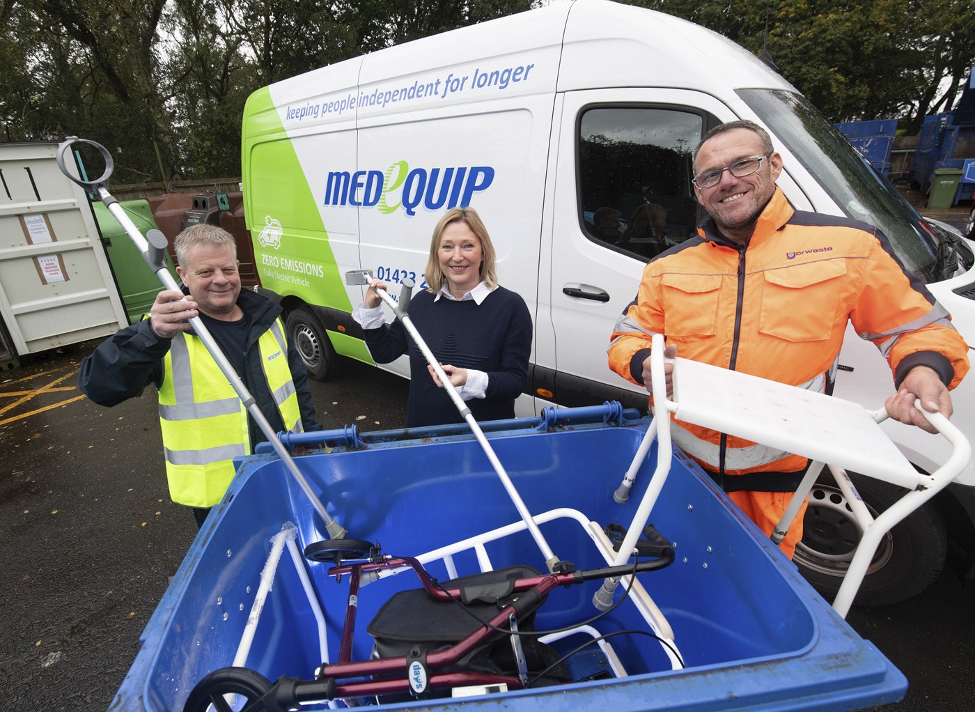 Last October new recycling bins were installed at Household Waste Recycling Centres (HWRCs) across North Yorkshire and York, in partnership with Medequip, which provides community equipment services to local authorities and the NHS across the UK. Since then, five tonnes of equipment have been donated - the equivalent of almost 7,000 crutches! All of the items are assessed, safety tested and either repaired and reused or stripped down for recycling. The average hospital could save £46,000 a year if just two out of every five walking aids were returned for reuse. Even faulty walking aids that are beyond repair can be recycled as scrap metal, generating income for NHS organisations.
